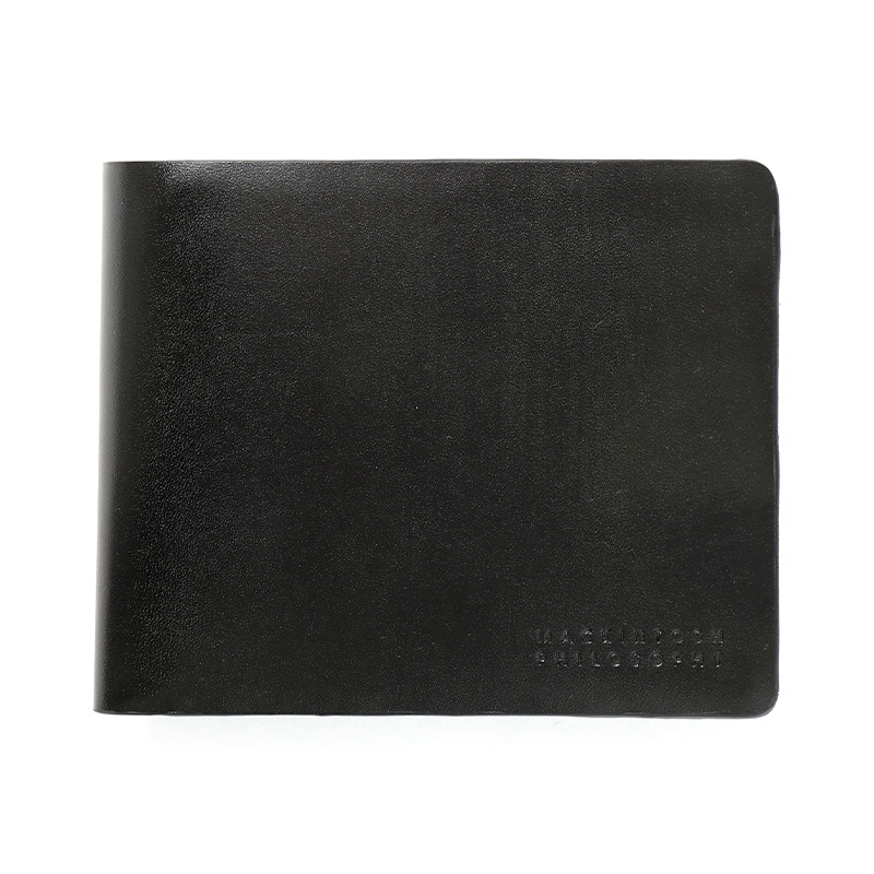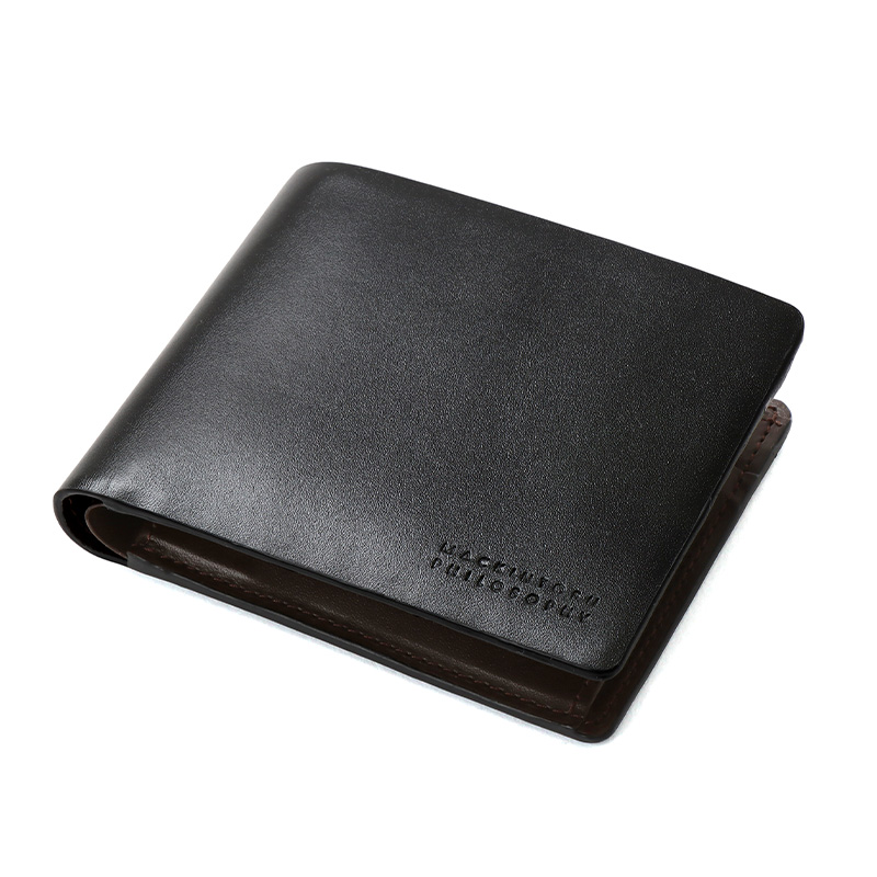 二つ折り財布はビジネスシーンでも使えるシンプルで上品なデザインで、カード室が4段とフリーポケットが3つあります。