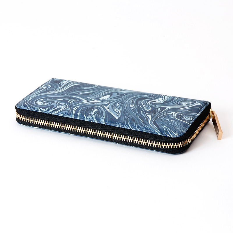 Mikado【ミカド】墨流し 日本製 ラウンドファスナー長財布 小銭入れ付