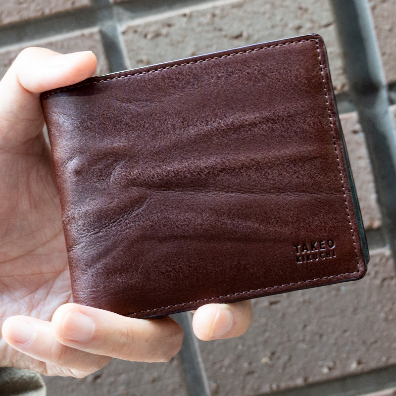 【タケオキクチ】 スクイーズ 二つ折り財布 小銭入れなし