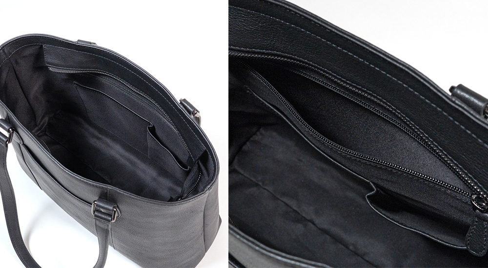 バック内には4つのポケットとファスナー付きポケットが1つあるので、小物などをそれぞれ分けて収納することができます。