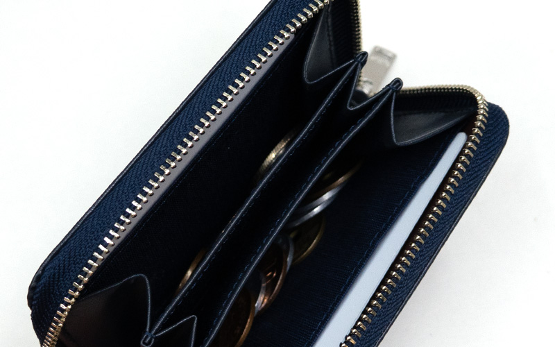 小銭入れは3室に分かれており、両サイドにはカードを収納できるポケットを備えています。