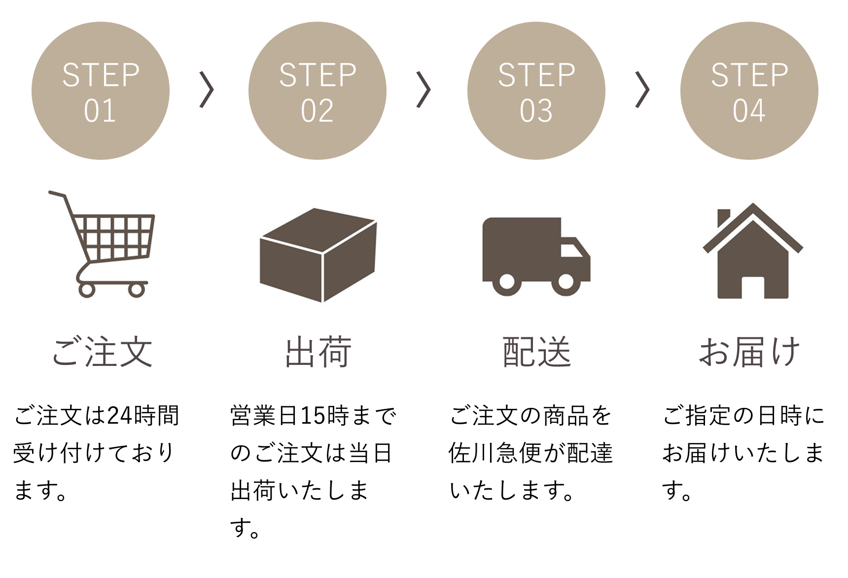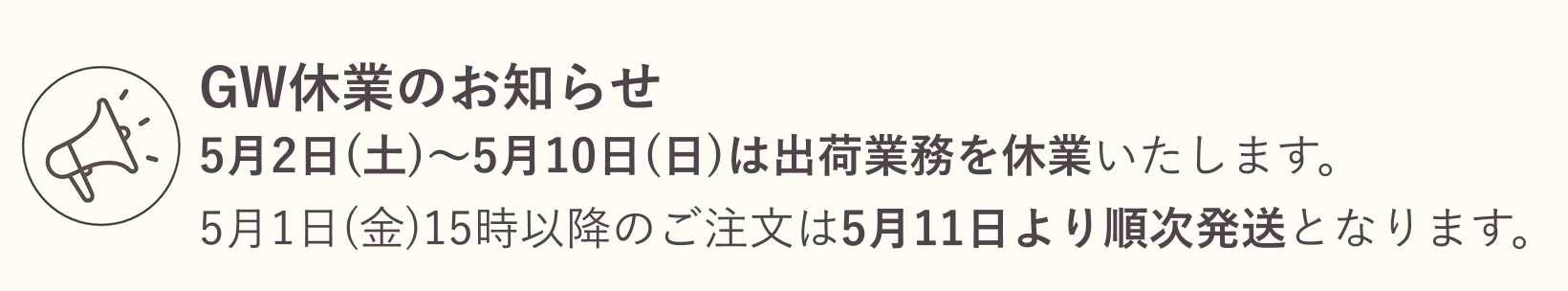 ※年末年始の休業、クリスマスなどの混雑時、商品の注文が集中した場合には、通常よりもお時間を要する場合がございます。